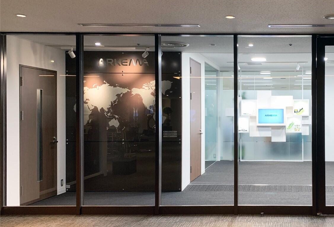 KRP3号館に、京都テクニカルセンターを構えるアルケマ社さま。フランスに本社を置く化学品メーカーである同社は、革新的な材料や、サステナビリティの向上に貢献できる素材を販売している。京都という立地、フランス本社という特徴からも、海外からの来客も多い同社のエントランスは、一見異なるように見える製品も、実は素材が同一であることを印象づける展示や、グローバル企業ならではの世界地図が。KRP地区内でも数少ない、天井から床まで全面ガラス扉のエントランスは、2019年にディ・ワークスにてリノベーション施工。