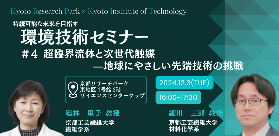 セミナーでは環境技術の最前線にて研究を進める京都工芸繊維大学の先生方をゲストにお招きし、最新の研究成果や業界のトレンドを共有いただくほか、各セッション後には、質疑応答・名刺交換会の時間を設け、参加者の皆様によるディスカッション、ネットワーキングの機会をご準備しております。