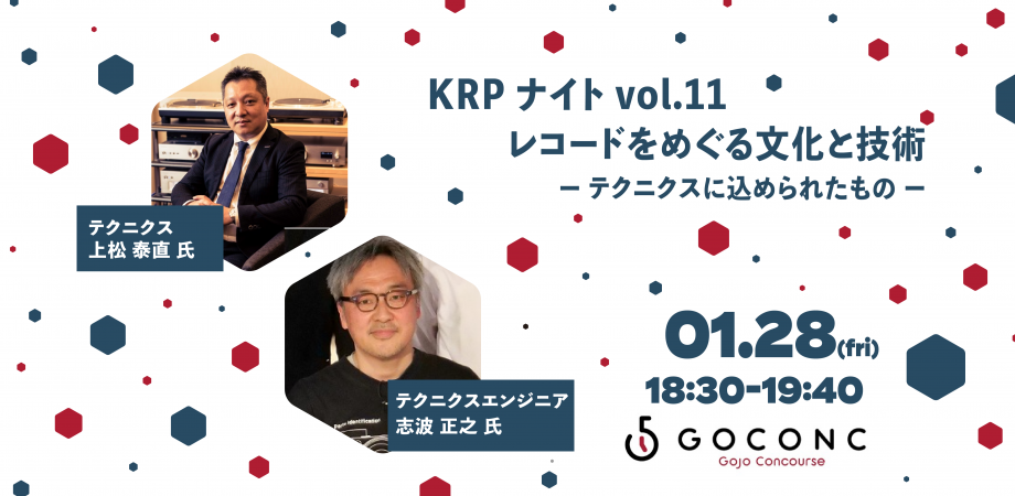 今回のKRPナイトでは、そんなレコードの人気の秘密や歴史を紐解きながら、レコード文化の発展にテクニクス(技術)がどのように寄与してきたのか、レコードプレーヤー開発へのこだわり、一度は消滅したテクニクスブランドの復活など、貴重な映像や主要パーツを使って解説します。