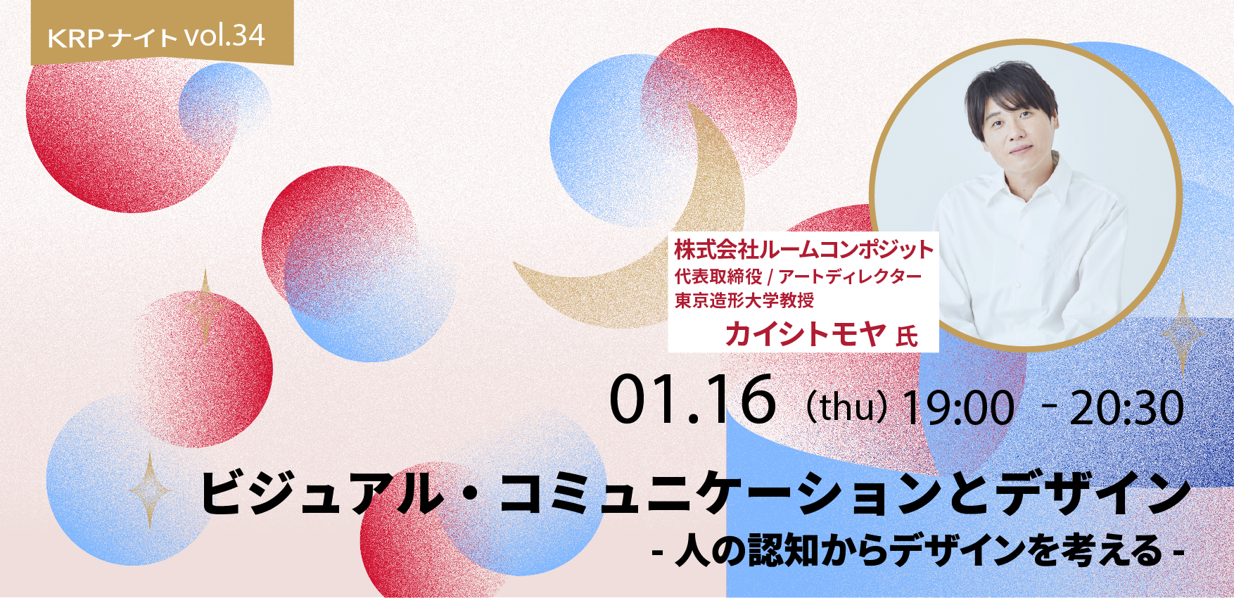一昨年・昨年に開催し、大好評だった「デザイン」をテーマにお届けするKRPナイトの第3弾、ついに開催!前回に引き続き、講師には株式会社ルームコンポジット代表取締役/アートディレクターのカイシトモヤ様をお迎えします。