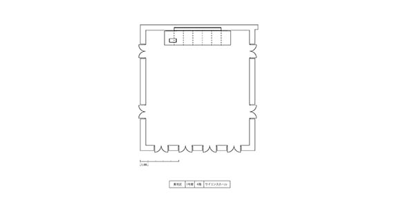 | 設備 | 3ヶ国語同時通訳ブース併設 演台:1台 看板バトン:3,230mm(直径50mm) 電源:1,500W(100V15A)×6回路 ホワイトボード:1台 インターネット:有線 / Wi-Fi ステージ:W8,400×D1,800×H200mm |