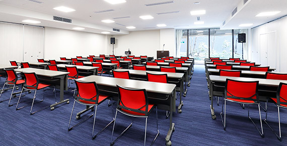 詳細情報:面積 120㎡、最大収容 100名、収容人数 スクール形式72席、シアター形式100席、口型48席