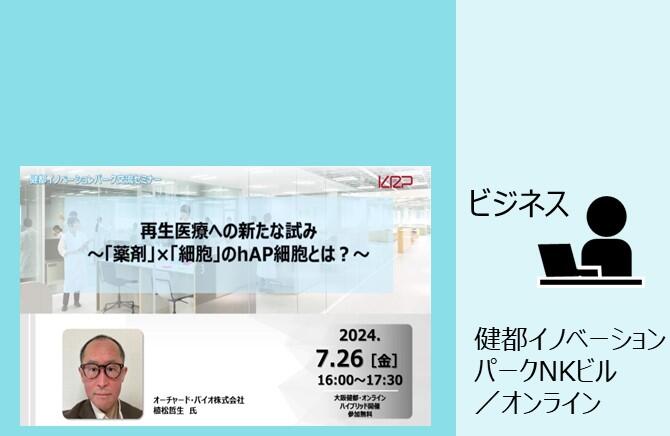 KRPフェス202407/26 (金)終了再生医療への新たな試み ~「薬剤」×「細胞」のhAP細胞とは?~ -