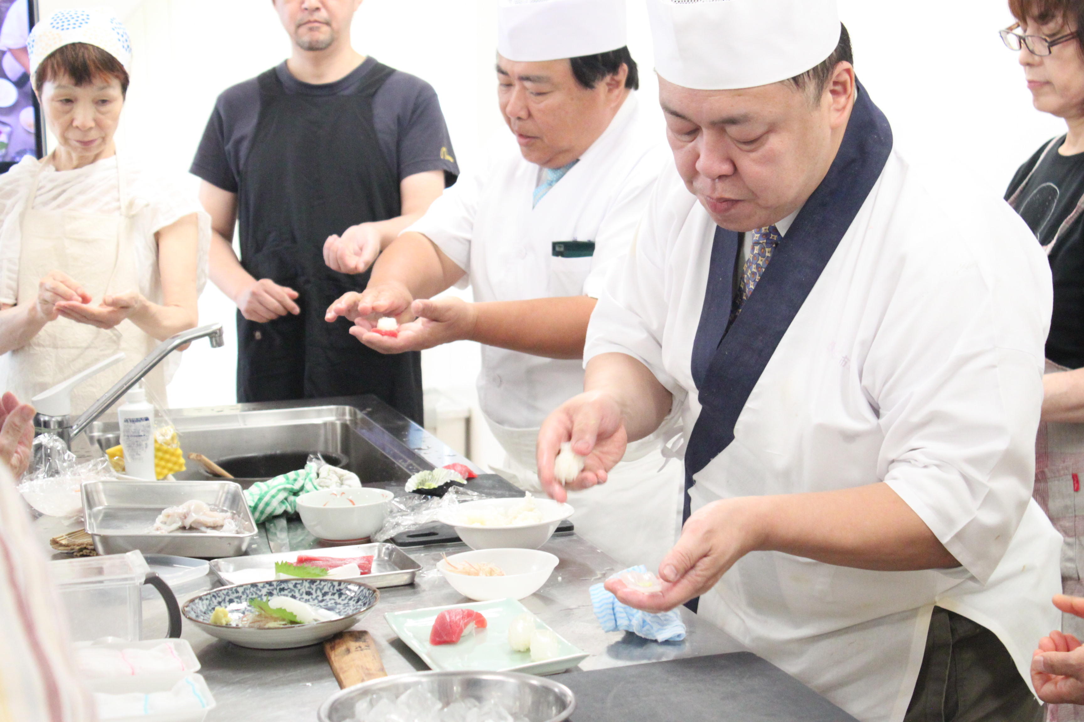 開催レポート 2018/08/05(日) 14:30 【味3】「京の食文化ミュージアム・あじわい館」主催<br>寿司職人直伝!お寿司と和食の教室 シェア Tweet 寿司職人から直接指導が受けられると人気の「すし教室」。今回のネタは、マグロと旬のイカ。イカは処理の仕方なども実習し、ゲソは湯引きにするなど、素材を余すことなく活かしました。にぎり寿司のほか、巻き寿司の講習も行いました。巻き寿司はネタが真ん中にくるように巻くのが難しいそう。皆さん熱心に講師の職人さんの手元に見入っていました。 イベント情報をみる