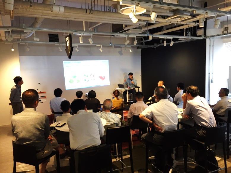 初日は、KRP地区ご入居者さまでもある株式会社スプレッドの久保山 敏之氏をスピーカーに迎え、次世代農業ビジネスについて、トレードグループ全体の取り組みや世界の状況もあわせてご紹介いただきました。この日は、KRP地区内の製薬会社の方から公的産業支援機関の方、地区外のメーカーの方や医療関係者の方まで、本当にさまざまな方にお集まりいただきました。