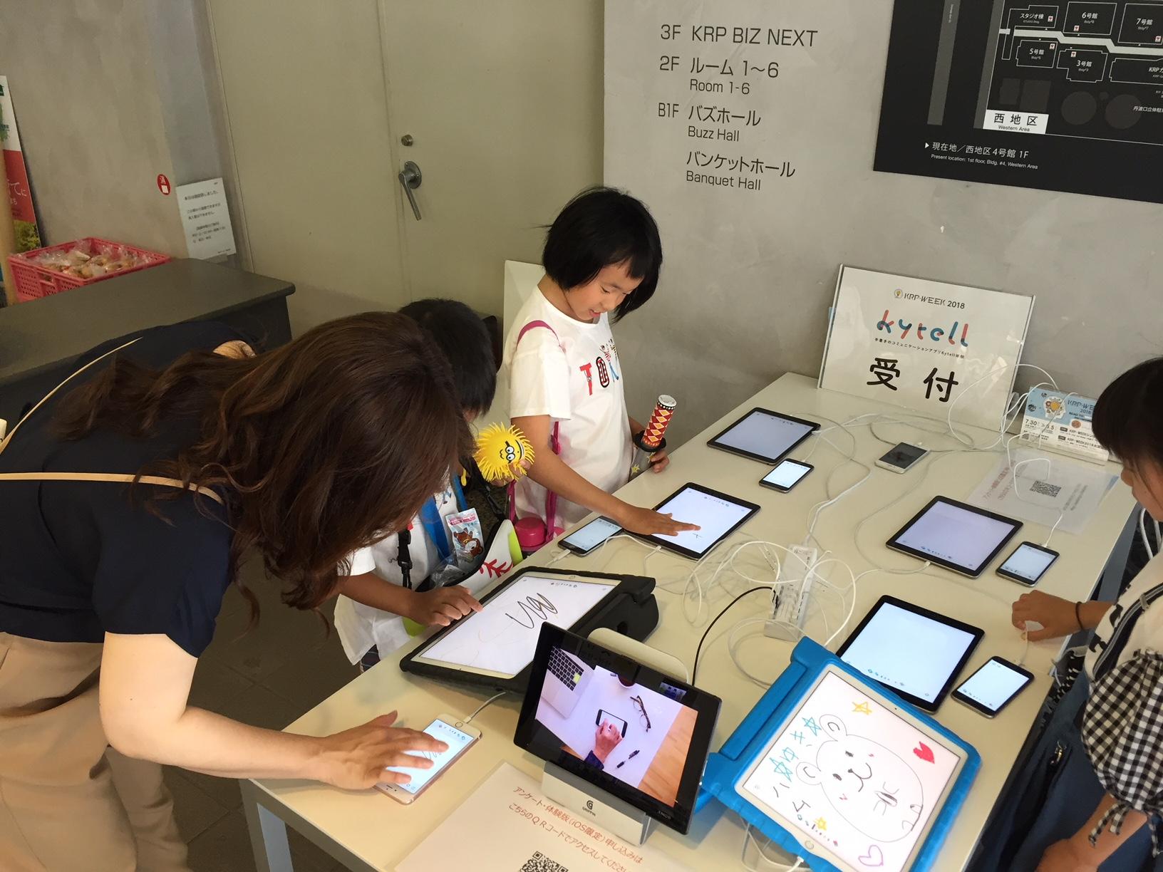 開催レポート 2018/08/04(土) 10:00 手書きコミュニケーションアプリkytell体験会 シェア Tweet 子どもといっしょに、会えない時間をあたためる。家族のためのコミュニケーションアプリkytell(カイテル)を展示しました。 小学生以下のお子さまとそのご家族のみなさま、100名以上のみなさまに体験していただきました。「一緒に描くのが楽しい」、「離れて暮らしているおじいちゃん、おばあちゃんと使ってみたい」などたくさんのお声をいただきました。今回いただいたご意見を参考に一般公開に向けて頑張ります。 イベント情報をみる