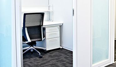 個室には机・椅子・無線LAN・タスク照明・電話機など