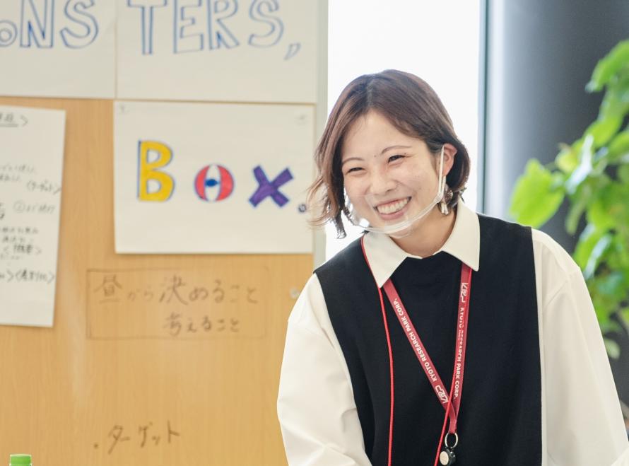 同志社大学大学院 総合政策科学研究科修士課程を修了後、京都リサーチパーク㈱(KRP)に入社し、現在4年目。たまり場やGOCONCなどイベントスペースの企画・運営の他、大学連携業務に従事。同志社大学や立命館大学との共同授業や、企業と学生の共創プログラム「MOVE ON」を担当。