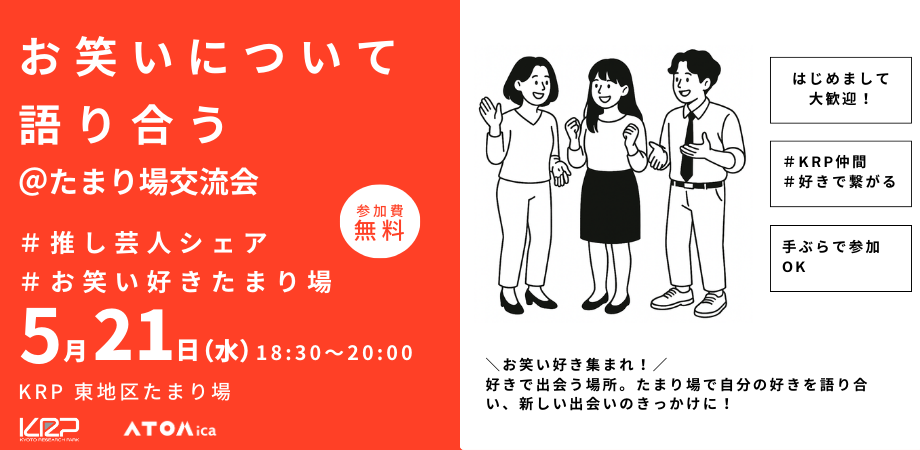 「たまり場」で、お笑い好きがゆるっとつながる交流イベントを開催します!「あのネタ、やっぱり最高だったよね」